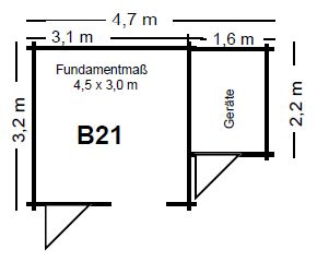 - Seitenwandhöhe: ca. 2,25 m, Anbau ca. 2,00 m (auch 1 Bohlenreihe höher erhältlich somit auch die Türen 10 cm höher erhältlich)
