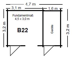 - Vordach vorne: 50 cm, Anbau: 40 cm